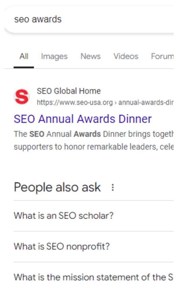 🔍 Why is this happening? SEO-USA.org is a legitimate non-profit focusing on educational opportunities, but it has nothing to do with search engine optimisation. Yet, it's showing up for searches like "SEO program," "SEO NYC," and "SEO Awards."